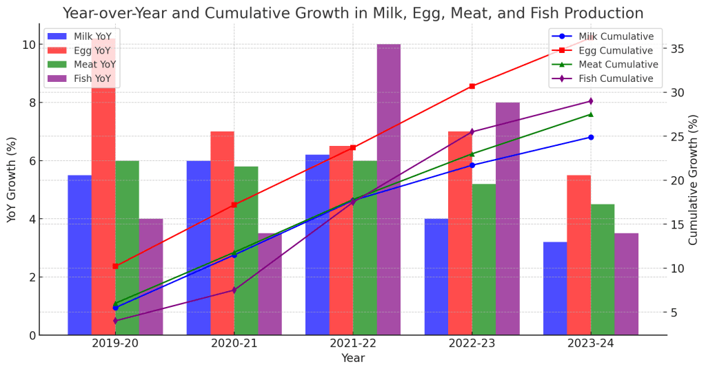 - The sector recorded a CAGR of 12.99%, making it one of the fastest-growing agricultural sub-sectors.